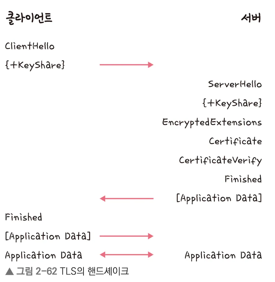 - 실제 애플리케이션 데이터 전송 단계에서는 대칭키 암호화를 사용한다.
