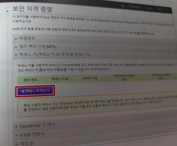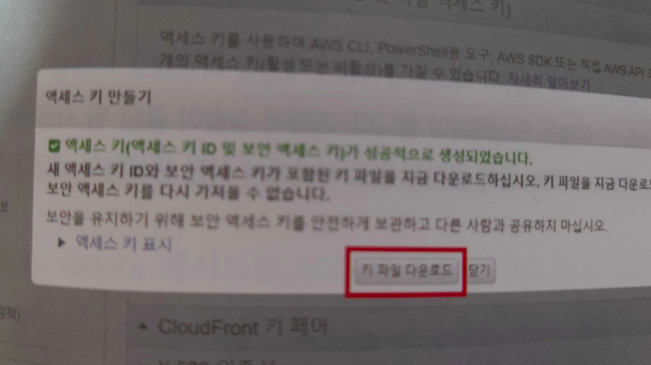 이미지 업로드 전용 S3 버킷을 만들었는데, key를 발급받을 수 있다.