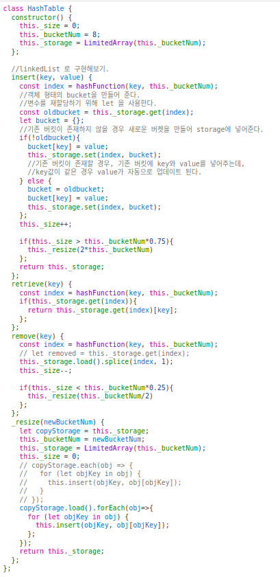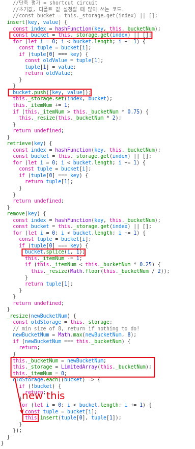 가장 큰 차이점은 버킷을 객체로 쓰느냐 배열로 쓰느냐 의 차이.