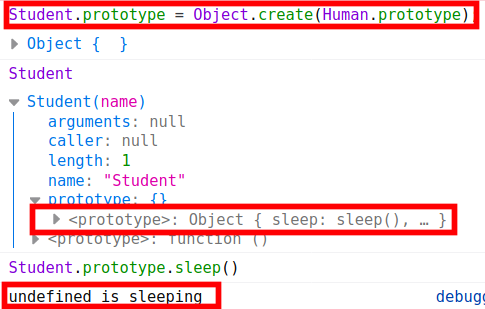 여기에서, Student.prototype에 Human.prototype 객체를 할당해준다.