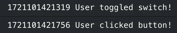 console.log(`${Date.now()} ${data}`);