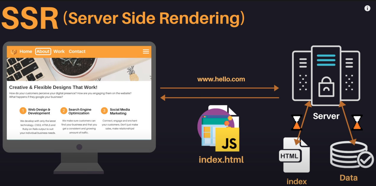 위와 같은 단점을 보완하기 위해 *Static Sites 에서 영감을 받은 Server Side Rendering 이 탄생한다.