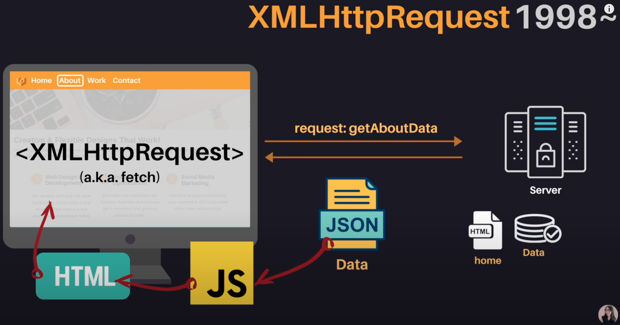 html 문서 전체가 아니라 json 과 같은 포맷으로 서버에서 필요한 데이터만 받아올 수 있다.