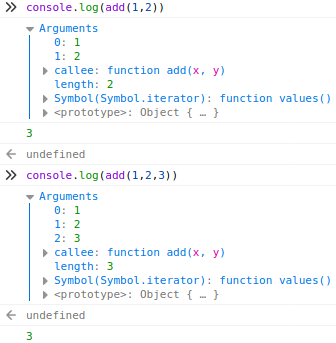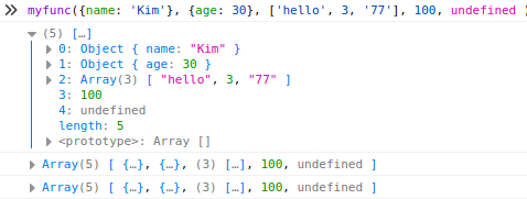 - Arguments => 호출 시에 넘긴 인자를 배열의 형태로 저장한 것을 볼 수 있습니다.