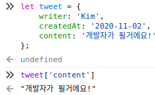 즉, bracker notation 을 쓸 때는, bracket 안쪽의 문자열 형식으로 전달해야 한다.