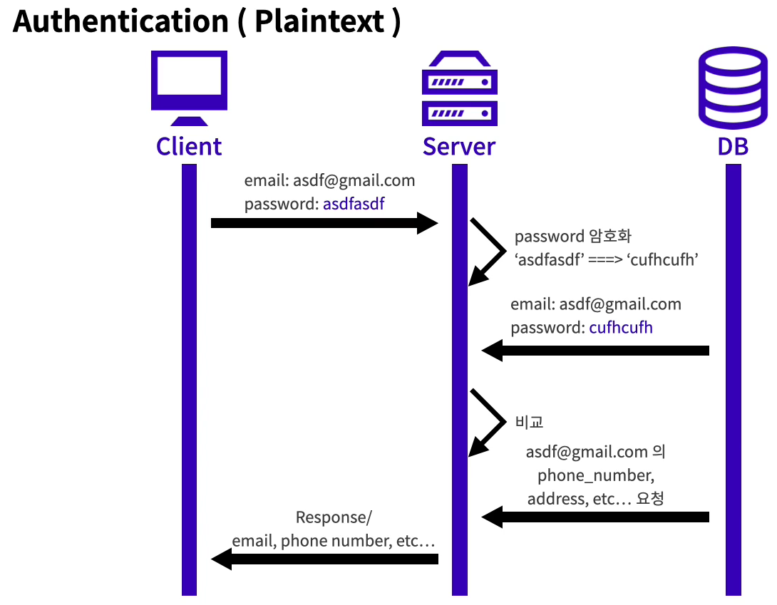 -> 클라이언트로부터 받은 password 와 DB 에 저장되어 있는 password 를 대조한 후 response 한다.