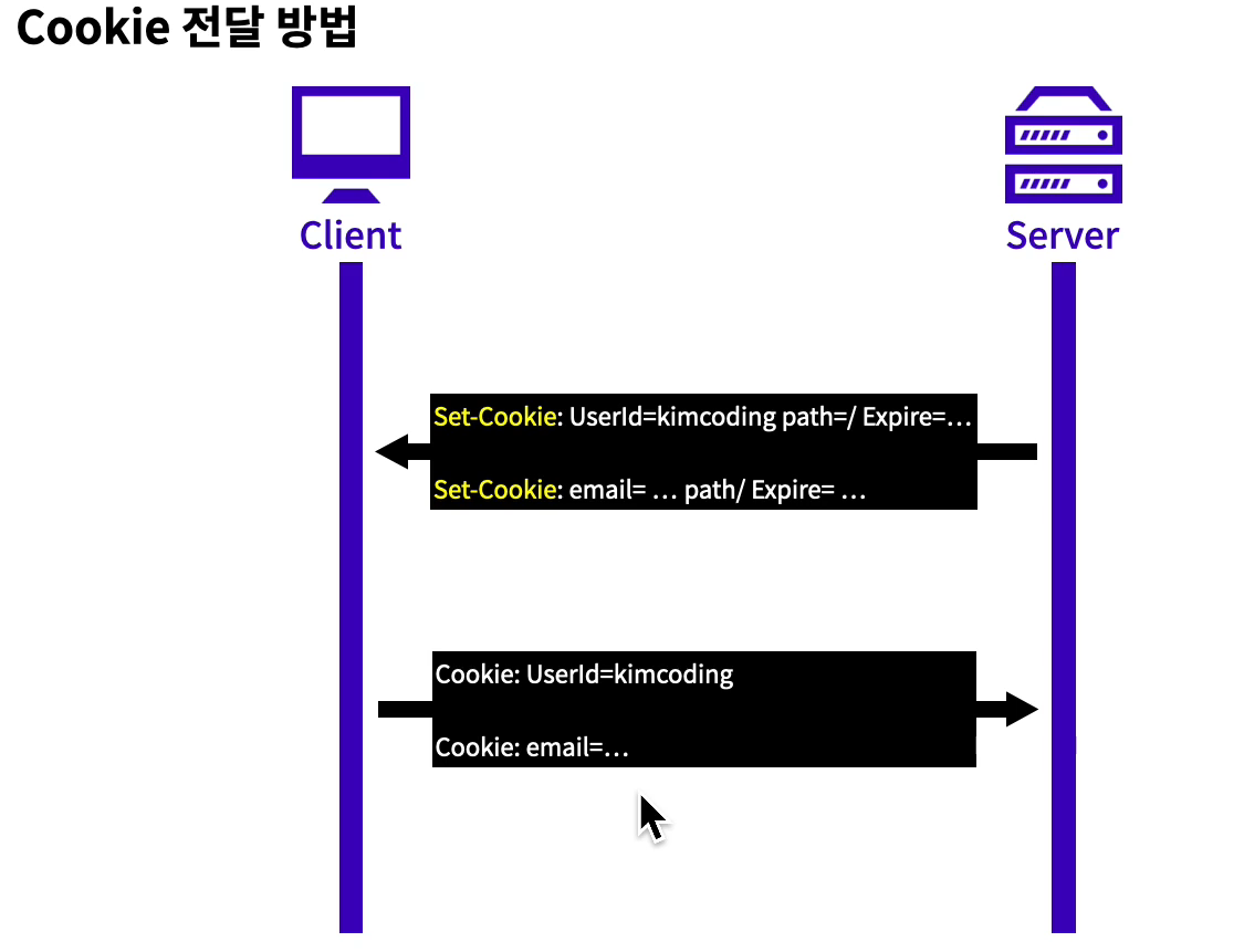 즉, 단순히 서버에서 클라이언트에 쿠키를 전송하는 것만 의미하지 않고 클라이언트에서 서버로 쿠키를 전송하는 것도 포함됩니다.
