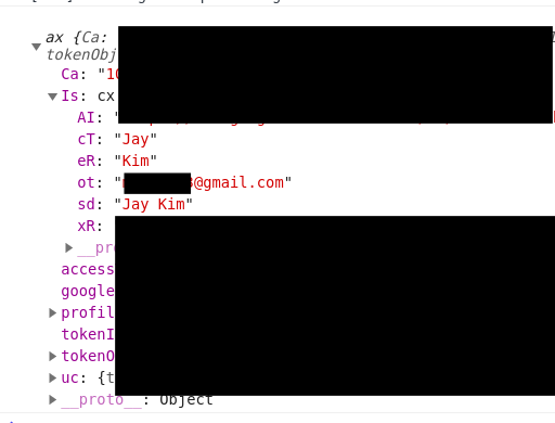 구글로부터 아래의 유저데이터를 받게 되는데, 구글의 경우 email 이 필수적으로 제공된다.