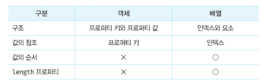 일반 객체와 배열을 구분하는 가장 명확한 차이는 값의 순서와 length 프로퍼티다.