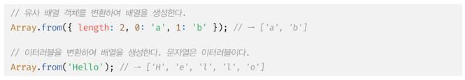 유사 배열 객체_array-like object 또는 이터러블 객체_iterable object 를 인수로 전달받아 배열로 변환하여 반환한다.