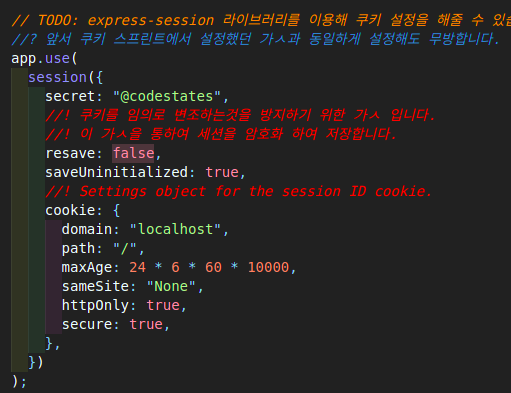 app.js 에서 express-session 모듈을 이용하여 쿠키를 설정해줄 수 있습니다.