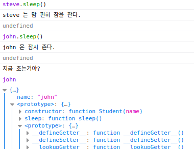 new User 를 호출하여 새 객체(object)를 만들면 프로토타입의 멤버변수와 메소드를 활용할 수 있게 된다.