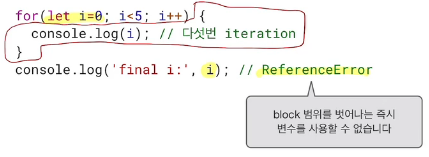 let키워드: 그러나. Block 단위로 Scope를 구분했을때 예측하기 쉬운 코드를 작성할 수 있다.